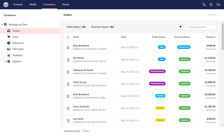 Powered by Umbraco’s familiar UI and leveraging the same underlying architecture, Umbraco Commerce uses the same principles and conventions as Umbraco CMS. This means your online store will be easy and intuitive to manage with neat features like colour-coded order status labels underpinned by a quick search for speedy management.